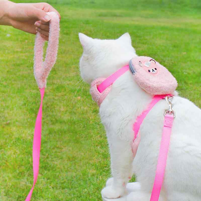 ペット 牽引ロープ 猫 犬 ハーネス リード かわいい 小熊 小型犬 中型犬 脱げにくい 散歩 お出かけ 赤 グレー ピンク ブルー