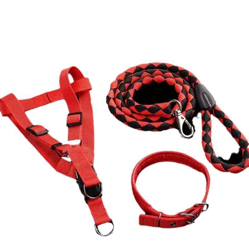 犬 牽引ロープ リード 中型犬 小型犬 大型犬 散歩用 ペット 首輪 テディ ポリエステル レッド ブラック(x2)