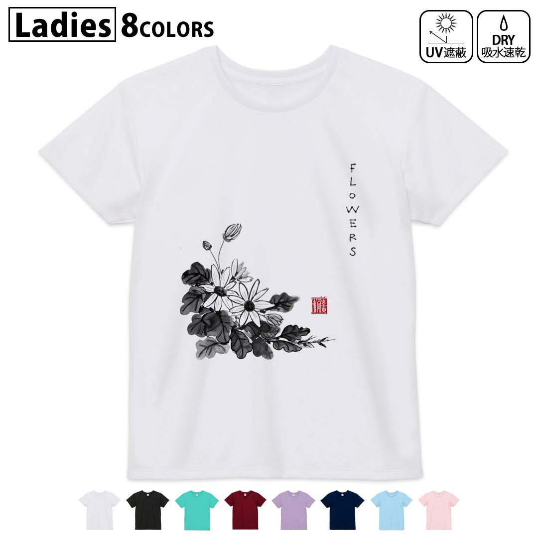 ドライ Tシャツ バックプリント 選べる8カラー tシャツ レディース 半袖 速乾 紫外線遮蔽 UV デザイン 2サイズ Tシャツ ティーシャツ T shirt 032066