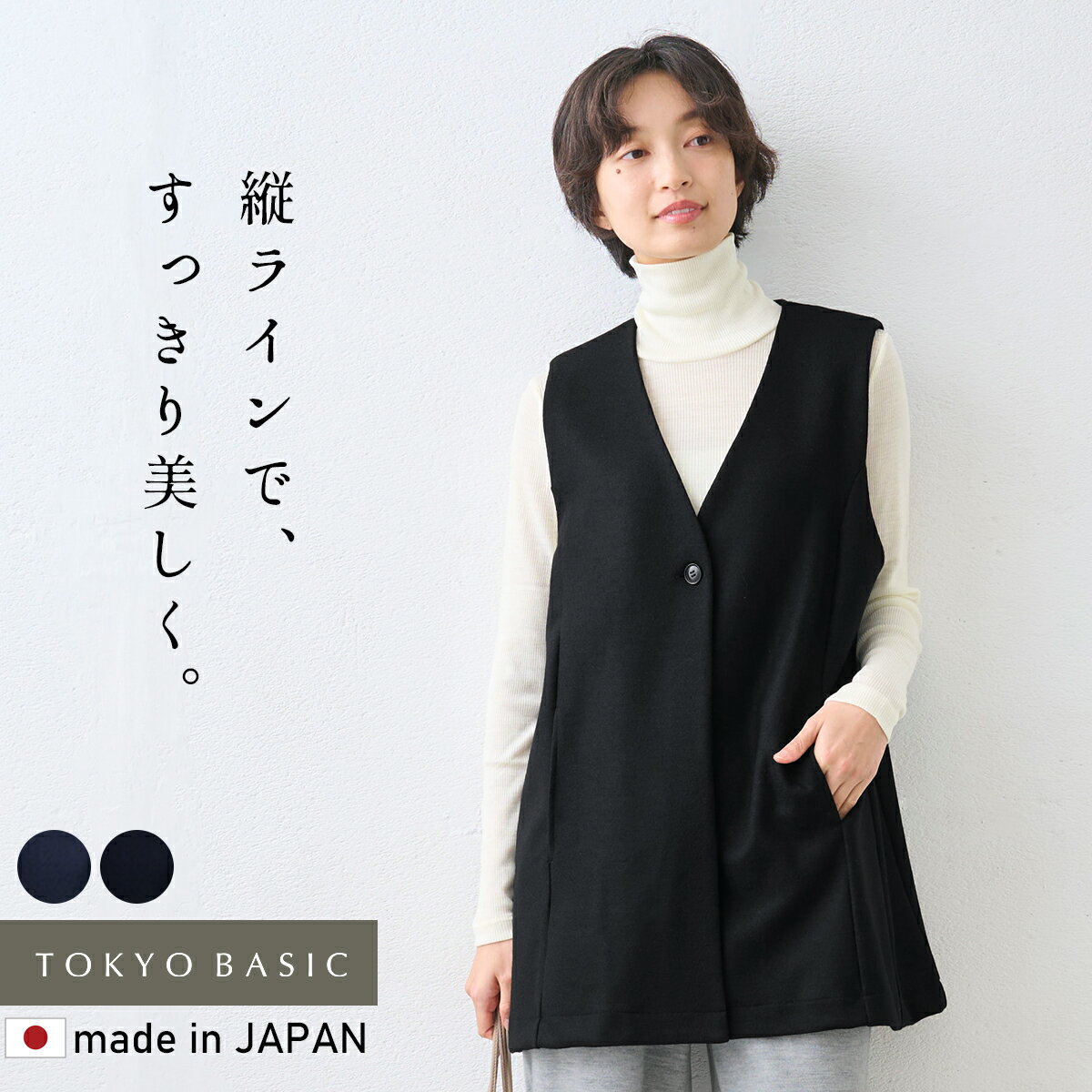【新作】[ ジレ ベスト レディース ウール 秋冬 ] 圧縮ウール100% ロングジレ / 日本製 40代 50代 60代 30代 女性 ロングベスト ウールジレ ウールベスト 羽織り 体型カバー 冬服 軽い 暖かい 上品 大人カジュアル シンプル きれいめ 重ね着 ポケット付き セットアップ可能