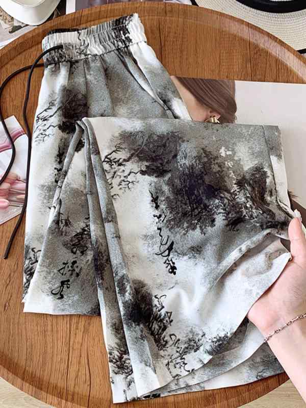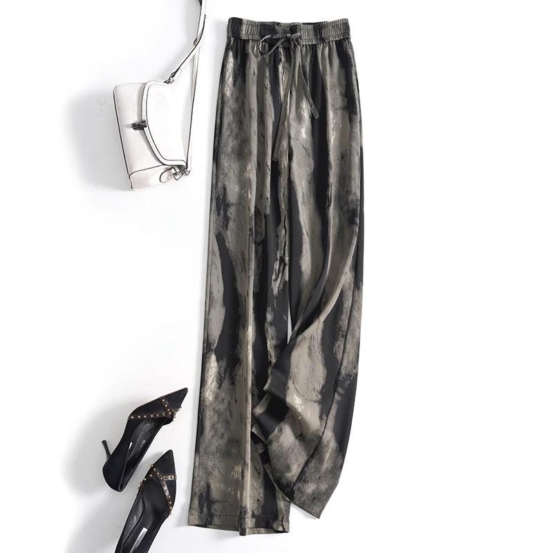タイダイ柄 ワイドレッグ パンツ 夏 薄手 涼しい ハイウエスト ひんやり 涼しい 快適 クール パンツ ストレート レッグ パンツ