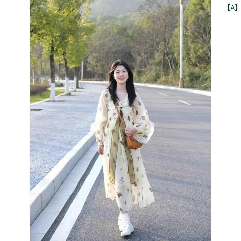 風 キャミソールワンピース カーディガン セットアップ ポリエステル エレガント 春夏 ロングワンピース 接触冷感 通勤
