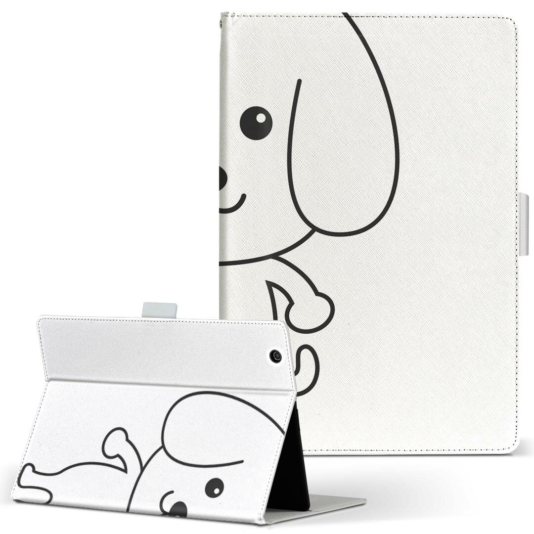 dtab d-51c 用 タブレットケース docomo ドコモ Lサイズ 手帳型 タブレットケース カバー マグネット式 レザー フリップ ダイアリー 二つ折り 革 薄型 軽量 016085 犬 かわいい