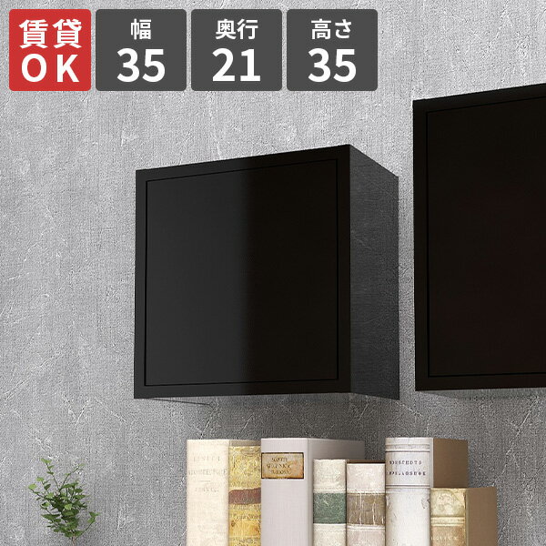 壁掛けラック 壁面ラック ウォールラック 正方形 ブラック おすすめ ワードローブ 飾り棚 本棚 収納ラック 石膏ボード 家具 おしゃれ ディスプレイラック 薄型 リビング収納 壁面棚 ボックス 壁付け お部屋 棚板 日本製 洗面所 シンプル 幅35cm 奥行21cm 高さ35cm ★