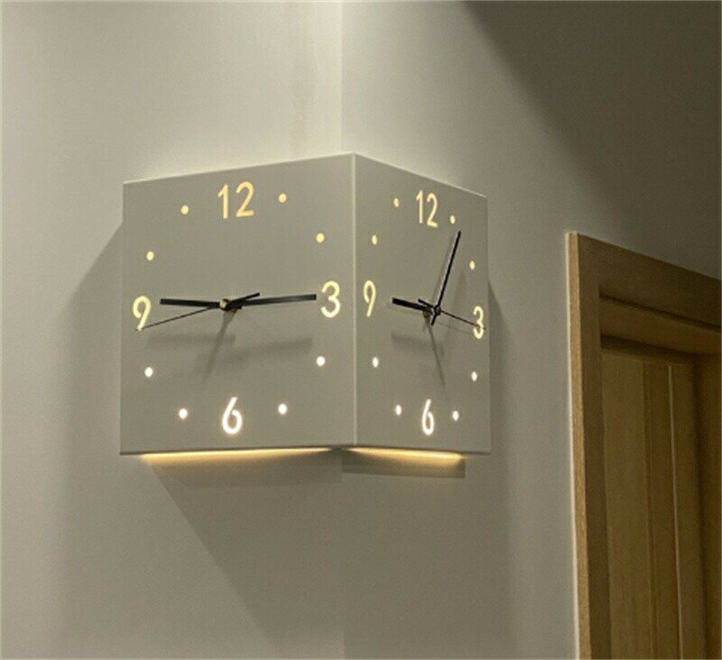 ★両面が見える!大人気時計!★掛け時計 クリエイティブ デコレーション おしゃれ 掛け時計 両面コーナー サイレント クオーツ時計 軽量 壁掛け時計 壁時計オシャレ かわいい シンプル パンチングなし 見やすい 時計 壁掛け かわいい アナログ ウォールクロック モダン