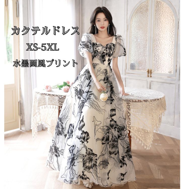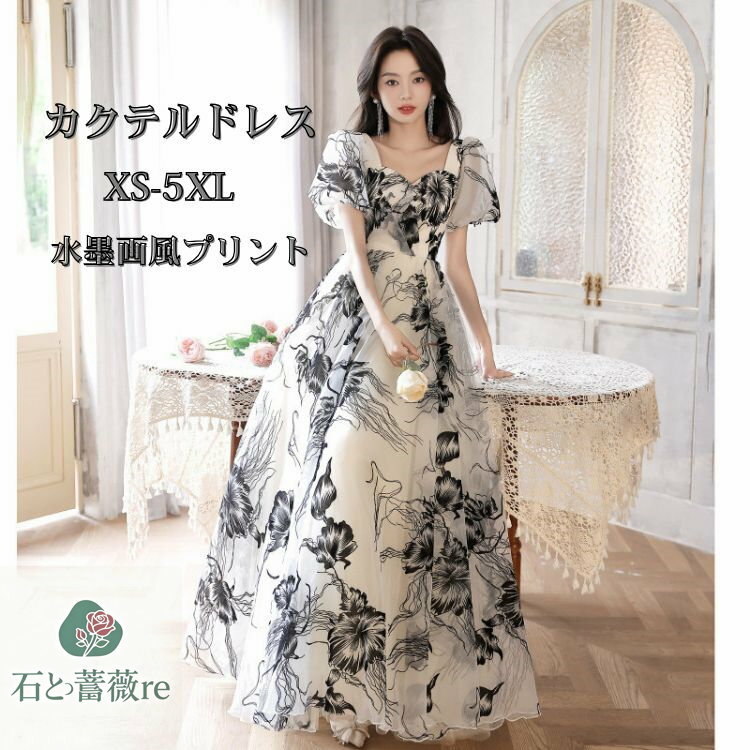 風プリント 大人 演奏会 イブニングドレス レトロ