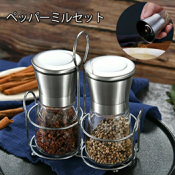 ペッパーミル 手動 2本セット ソルトミル スパイスミル スパイス 調味料 調味料挽き ミル 香辛料 粗さ調節 塩 黒胡椒 胡椒 山椒 花椒 キッチン ローズマリー キッチン キッチン用品 使いやすい グラインダー