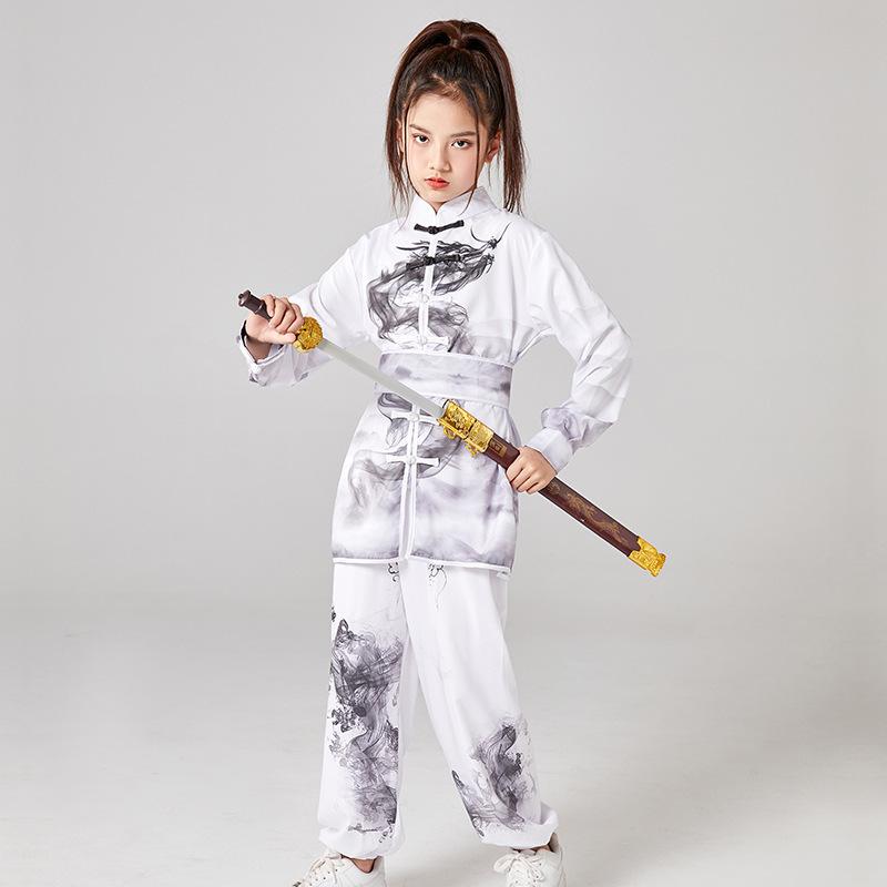 風 中国風 太極拳 長拳 南拳 練習着 稽古着 トレーニングウェア 演武服 試合用 ビニロン 長袖 半袖 ホワイト