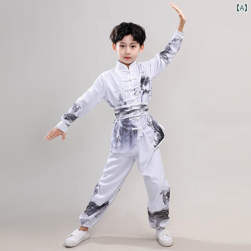 風 レトロ 古風デザイン 太極拳 武術 演武 大会 練習 訓練 体力テスト ナイロン素材 軽量ウェア