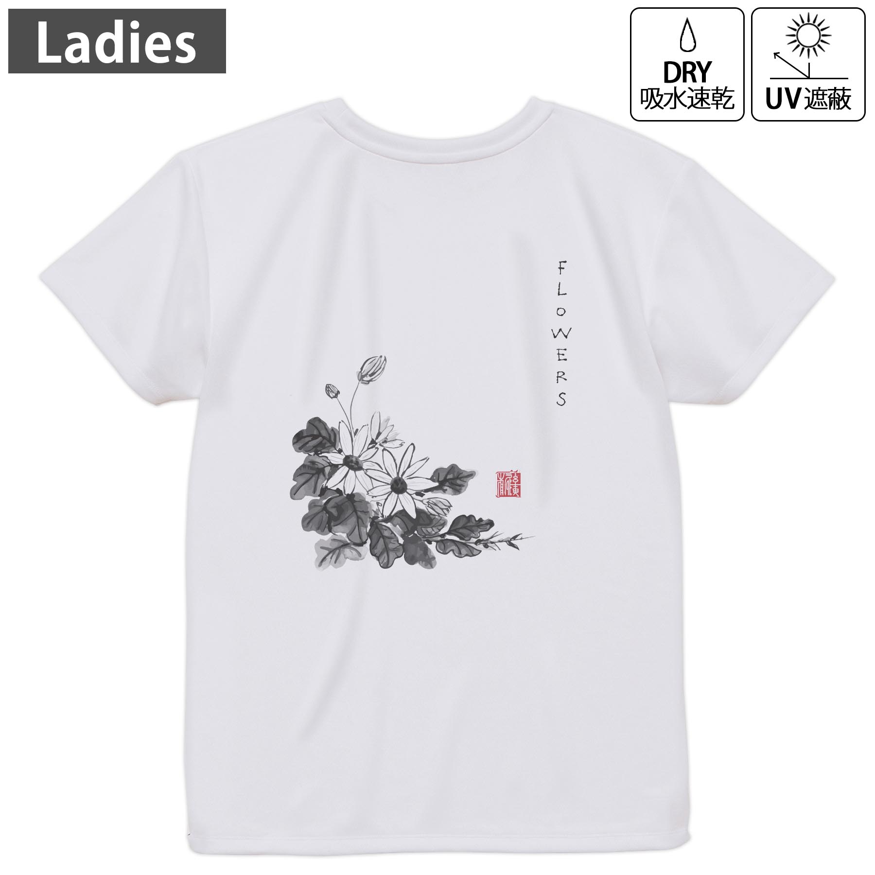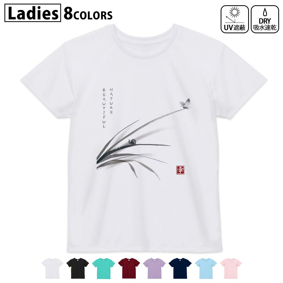 ドライ Tシャツ バックプリント 選べる8カラー tシャツ レディース 半袖 速乾 紫外線遮蔽 UV デザイン 2サイズ Tシャツ ティーシャツ T shirt 032062
