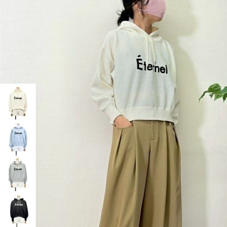パーカー レディース ニットカーディガン 秋冬 小柄 上着 羽織り ポリエステル 無地 フード付き ジップアップ ミドル丈 アイボリー カーキ ブルー ブラック