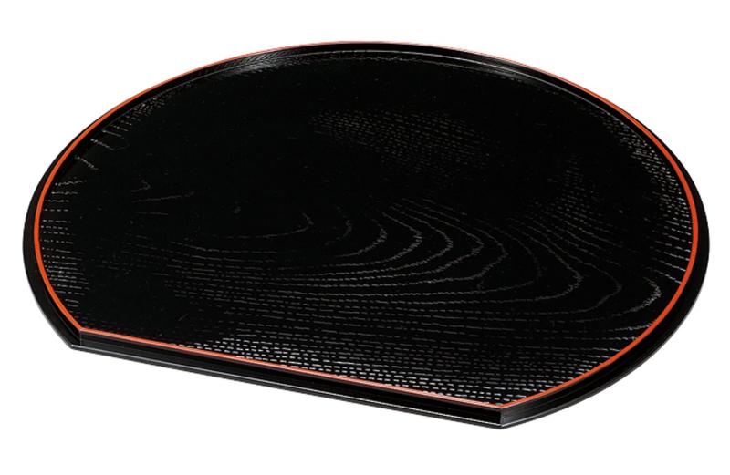 山中塗 木目 半月 盆 12.0 黒 M13224-3