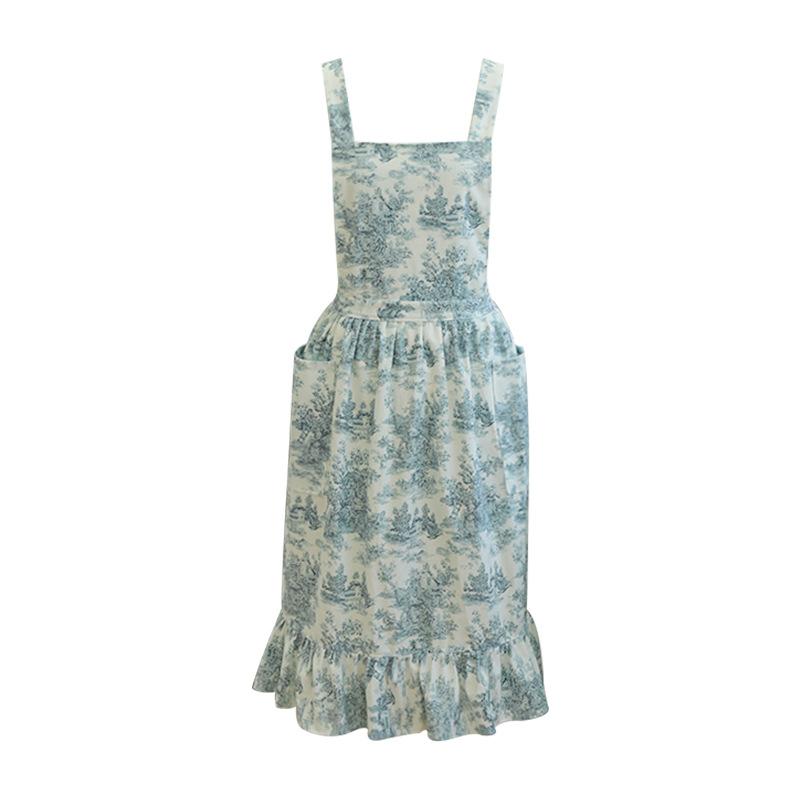 レトロ イン 高級 水墨 画 婦人用 生地 家庭用 キッチン 防汚 フリルスカート 風 サスペンダー エプロン