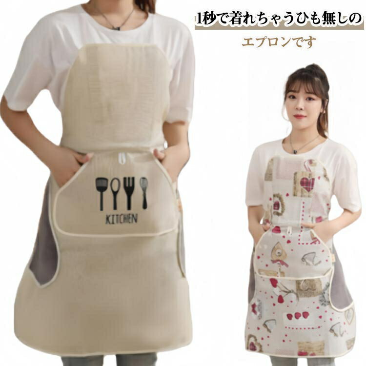 エプロン 防水 撥水 1秒で着れる ロングエプロン 紐なし 取付 ポケット付き 保育士エプロン おしゃれ レディース メンズ ワンタッチ カフェ えぷろん 美容師 ワークエプロン 掃除 料理 水仕事 家事 飲食店 業務用 ガーデニング 作業用 仕事汚れ 濡れ 防止 洗える 軽量 速乾