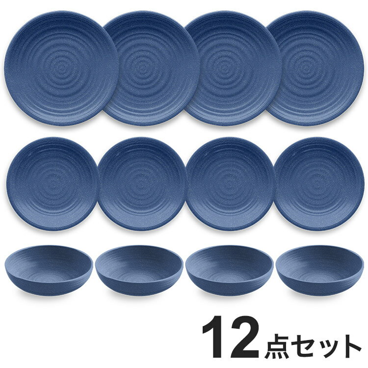 planta アーティザン ブルー 12点セット メラミン食器 割れにくい おしゃれ 食洗機対応 ボウル お皿 深皿 可愛い 電子レンジ不可 食洗機対応 食器セット プレート(代引不可)【送料無料】