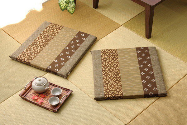 座布団 綿100% 国産 和柄 モダン 絣座布団 ブラウン 約55×55cm 2枚組(代引不可)【送料無料】