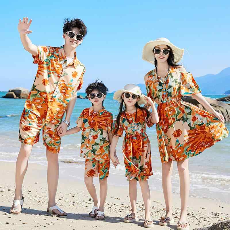 親子お揃い 墨絵 水墨風 親子コーデ 夏着 薄手 親子ペア ペアルック アロハ ワンピース ママ パパ 息子 娘 リンクコーデ キッズ 子供用 家族 夏 海 ビーチ 旅行 リゾート カップルお揃い 恋人 家族ペアルック パーティー おしゃれ 夏休み カジュアル 男