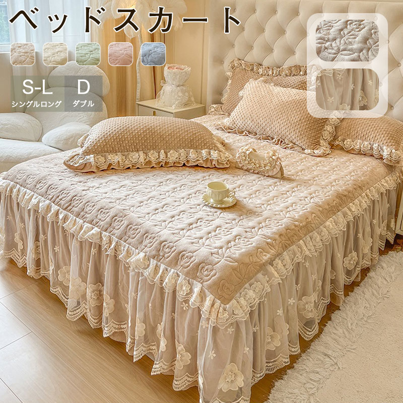 インテリア ベッド スカート 韓国 プリンセス レース ウォッシュ ベッド スカート ワンピース 夏 冷感 裸 スリープ シルキー 15 m 18 ベッドスプレッド