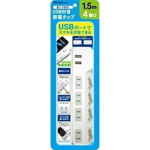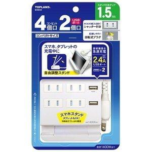 トップランド コンセント4個口 USB2ポート 1.5m M4214