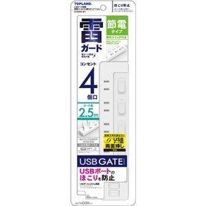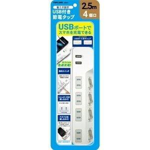 トップランド USBゲート搭載 節電コンセント4個口タップ2.5m GTS425-WT