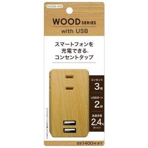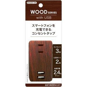 トップランド USBスマートタップ(3個口+USB2ポート) ダークウッド M4226-DW