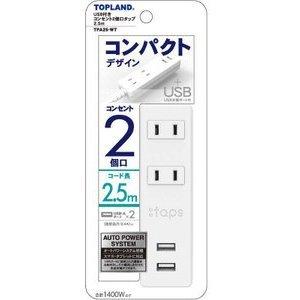 トップランド USB付きタップ2.5m IC&PD付 TPA25-WT