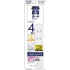 トップランド USBゲート搭載 コンセント4個口タップ1.5m GT415-WT