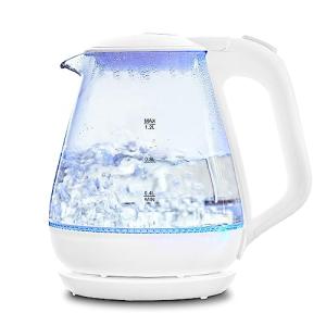 ヒロコーポレーション ガラスケトル 大容量 1.2L 自動スイッチOFF 青く光る ライト付き オープン 透明 かわいい シンプル おしゃれ H