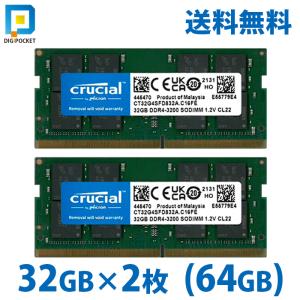 2枚組 32GB ×2 ( 64GB ) DDR4 3200 mhz Crucial Micron製 増設 メモリノート・小型 PC PC4 25600 SODIMM 260pin CT32G4SFD832A