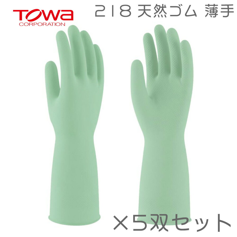 (5双セット)手袋 TOWA 218 うす手 天然ゴム 裏植毛 炊事 洗濯 食品衛生法 規格基準適合 東和