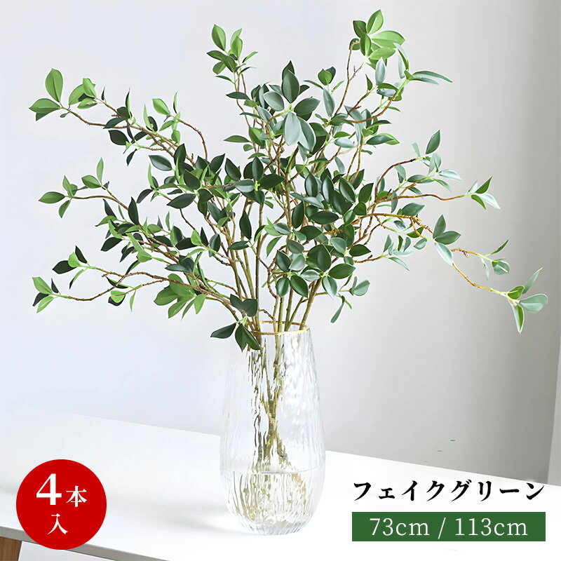 フェイクグリーン 観葉植物 造花 インテリア 人工観葉植物 4本入 葉 高さ73cm/113cm花瓶なし 緑