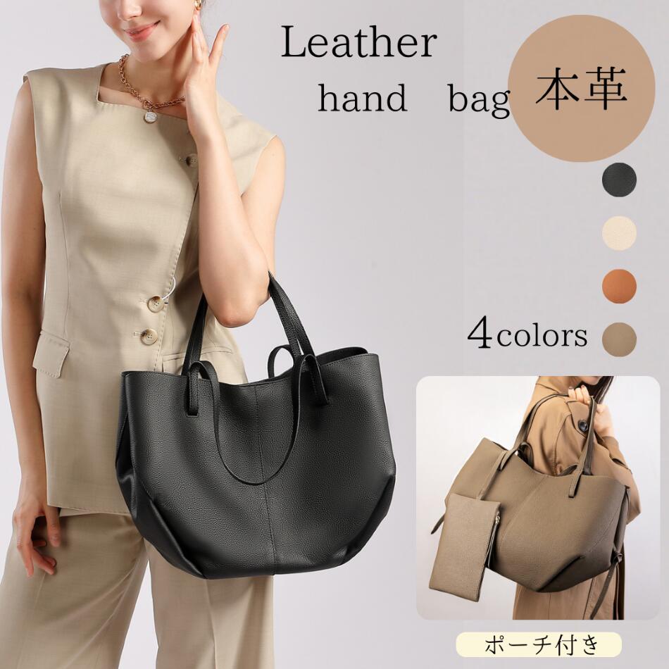 【20%off+3%off18560⇒14403 3/11 2時まで】本革 レディース メンズ バッグ バック レザーバッグ 牛革 レザー 大きめ 扇型 ハンドバッグ 肩掛け 上質 大人 きれいめ 上品 シンプル 通勤 通学 可愛い ポケット 大容量 トート ポーチ付き ブランド 皮 革 トートバッグ 黒