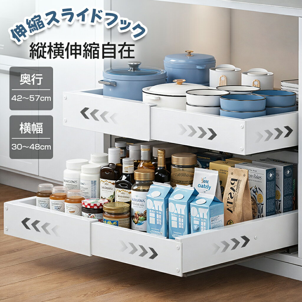 伸縮スライドボックス 全方位伸縮 シンク下収納 スライドラック キッチン収納引き出し 収納 幅伸縮 引き出し 伸縮式 穴開け不要 調味料収納ラック 台所収納 小物整理 キッチンラック 台所 洗面台 シンク下 スライド
