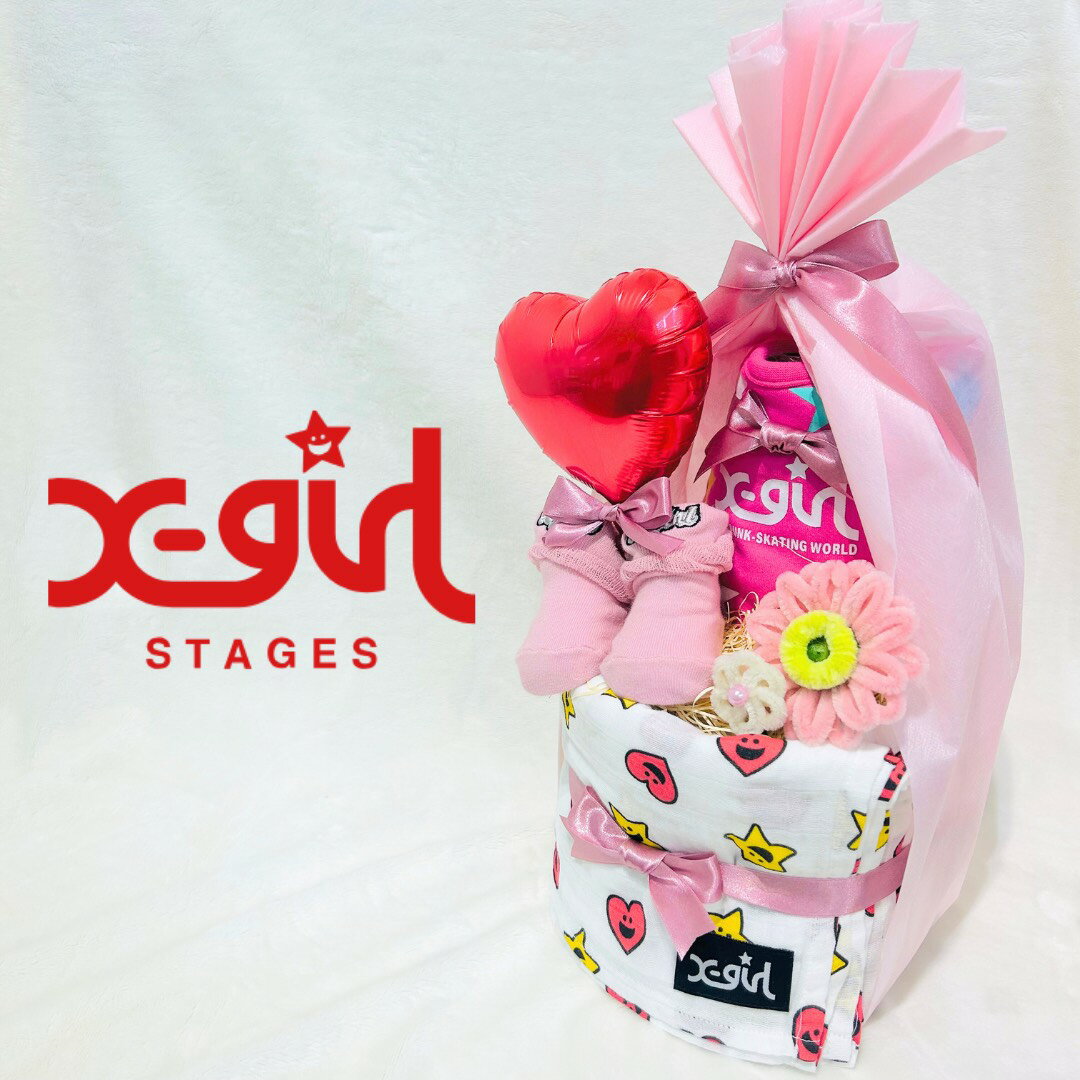 おむつケーキ 女の子 出産祝いX-girlSTAGES エックスガールステージス スタイ ベビー靴下 おくるみ 2段 ベビー ギフト