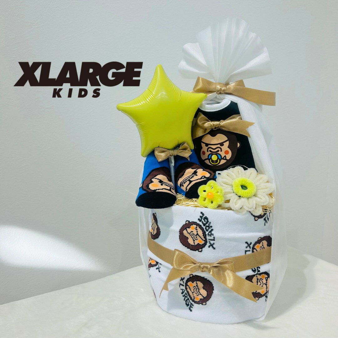 おむつケーキ 男の子 出産祝い XLARGEKIDS エクストララージキッズ スタイ ベビー靴下 ベビー用品 2段 ゴリラ ベビー ギフト