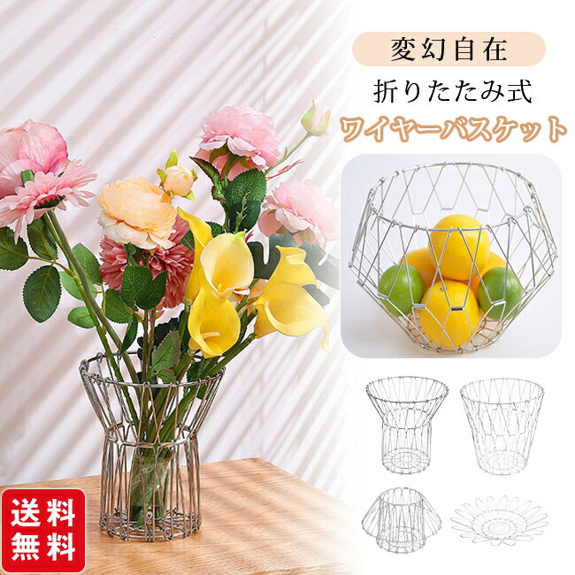 ステンレスバスケット 変形 ワイヤーバスケット 折りたたみ 収納 みかん 北欧 韓国 インテリア 雑貨 ケース 置物 フルーツバスケット おしゃれ モダン リビング キッチン 玄関 メタル
