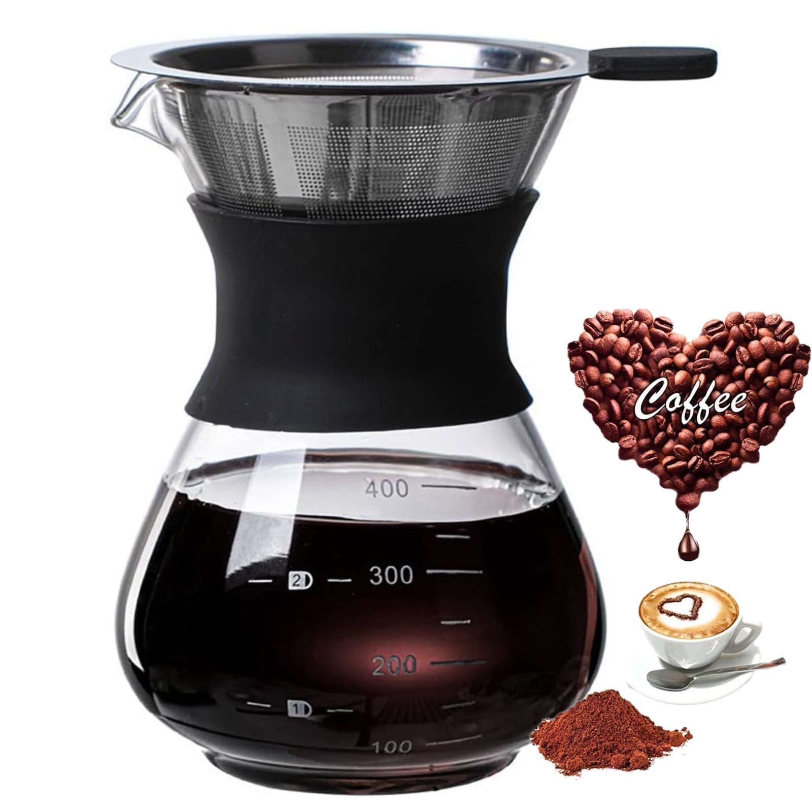 コーヒーサーバー(ステンレスフィルター付)【紙フィルター不要】 耐熱 コーヒーサーバー セット 400mlステンレス フィルター ピッチャー ガラス コーヒードリッパー コーヒーポット 割れにくい コーヒー 珈琲 ドリッパー 初心者 セット プレゼント ギフト