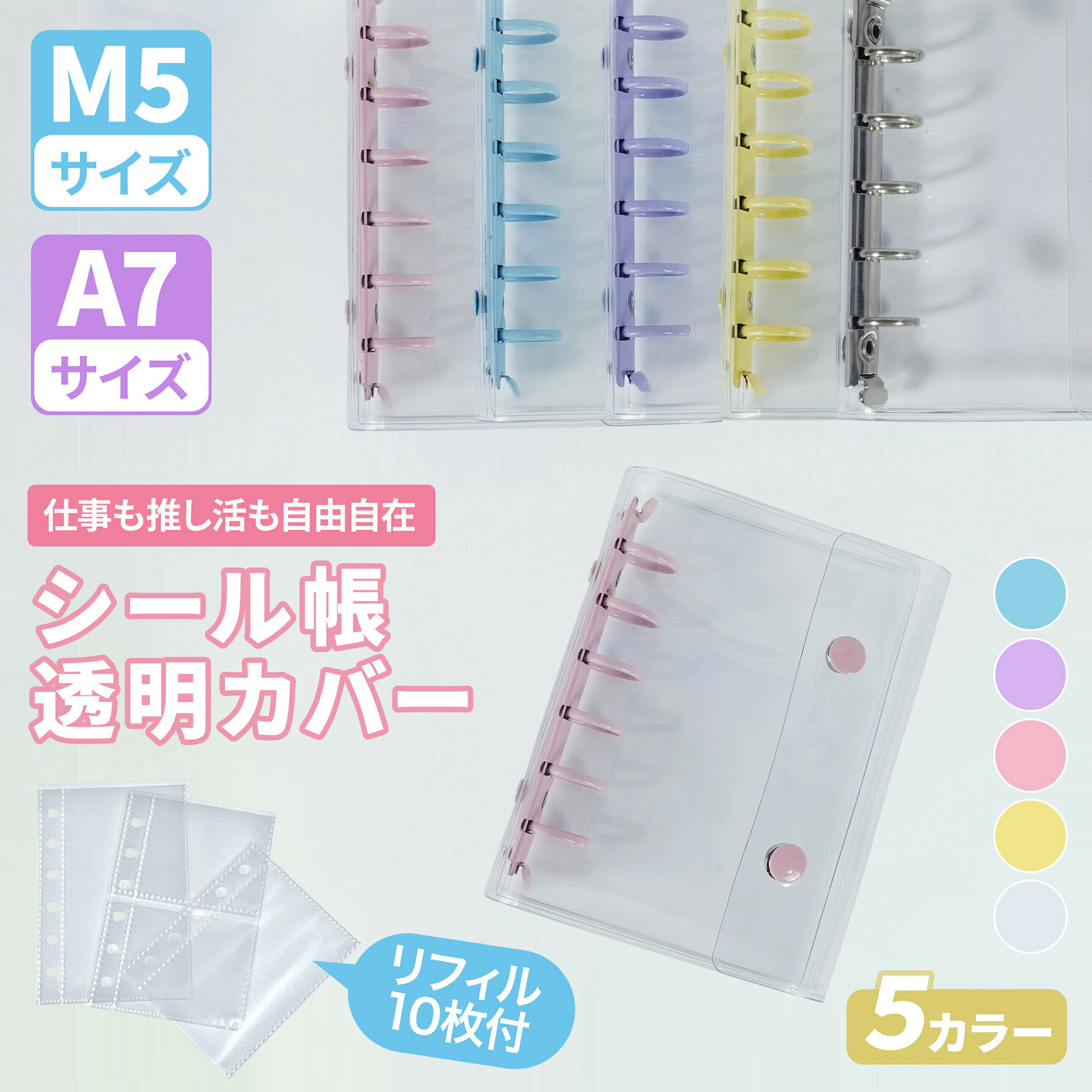 シール帳 リフィル付き バインダー 透明 クリア シール 透明 M5 A7 クリア カラフル バインダー 穴開きシート シールバインダー はがせる シール手帳 台紙 クリアバインダー 推し活 女の子 男の子 大人向け クリアバインダー