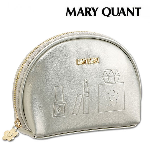 ★マリークワントラッピング付き★マリークワント MARY QUANT マリクワ エンボスコスメ ラウンドポーチ シルバー 小物入れ 化粧 デイジー ブランドポーチ 化粧 合皮 エンボス メイク コスメ プレゼント ギフト かわいい おしゃれ お返し クリスマス 誕生日