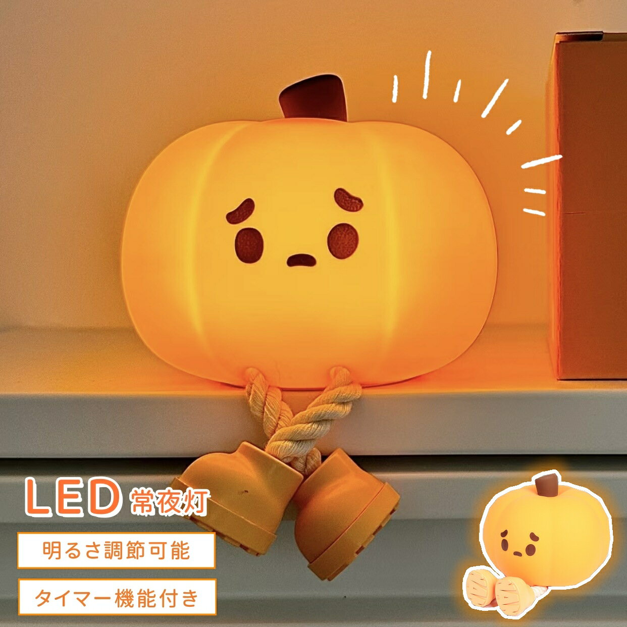 ナイトライト カボチャ型 可愛い 授乳ライト おしゃれ 間接照明 卓上ライト タイマー設定 タッチ式 TYPE-C充電 調光機能 雰囲気作り インテリア クリスマス 誕生日 新年 プレゼント 出産祝い 日本語説明書