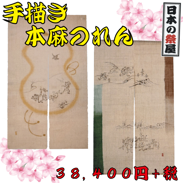 手描き本麻のれん 祭 祭り 旅館 店舗 のれん 暖簾 麻 本麻