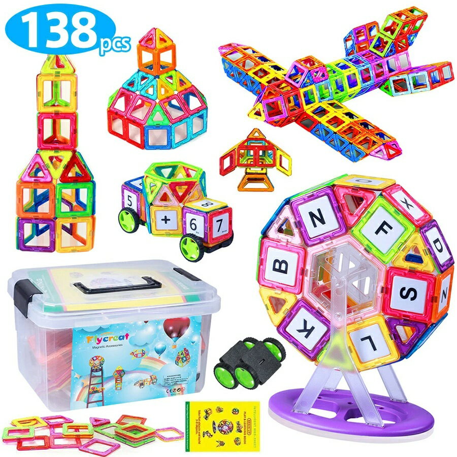 138pcs 大容量 マグネットおもちゃ マグネットブロック 特許あり 磁気おもちゃ 子供 女の子 男の子 知育玩具 観覧車付き 磁石ブロック 想像力と創造力を育てるオモチャ 立体パズル ゲーム モデルDIY 磁石積み木 誕生日
