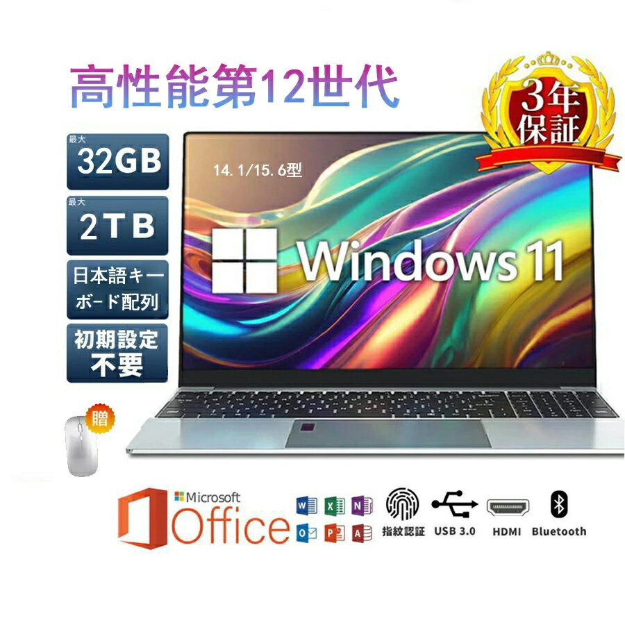 【新品 2026年最新モデル!】ノートパソコン 新品 windows11 搭載 Office付き win11 pc 12世代 CPU N5095 SSD 1000GB オフィスパソコン 送料無料 オフィスパソコン SSD128G~2TB メモリ6GB~ 32GB 15.6インチ大画面 日本語キーボード付き 高性能