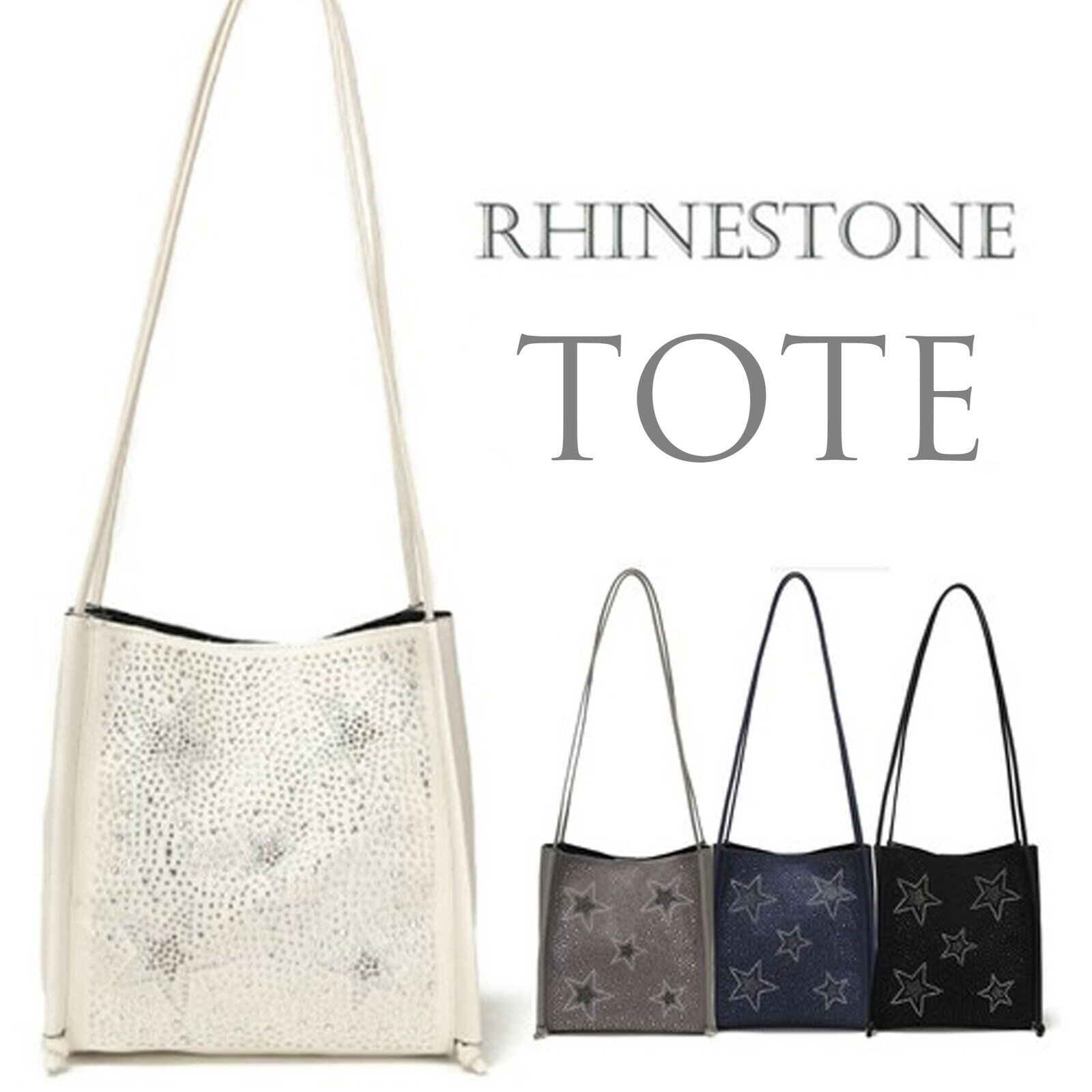 【楽天スーパーSale割引】 【60220】ポーチ付き ラインストーン スタッズ トートバッグ【idadi】