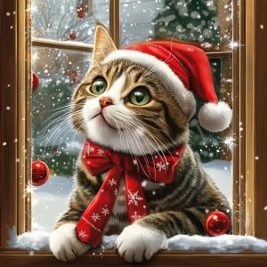 ダイヤモンドアート キット サンタねこのクリスマス 初心者 DIY ビーズ絵画 ビーズアート 簡単 大人 子供 手芸キット モザイクアート カラービーズ パズルアート