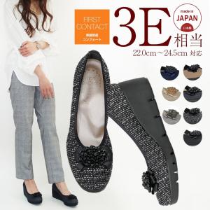 パンプス レディース 幅広 3E ローヒール バレエ シューズ フラットシューズ フォーマル 黒 卒業式 入学式 母の日