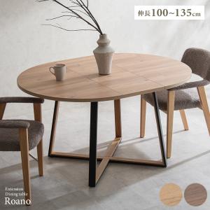 伸長ダイニングテーブル Roano(ロアーノ)4人掛けテーブル 四人掛け 拡張 伸縮 食卓 円卓 ラウンド オーバル 木目柄 6人 六人掛け