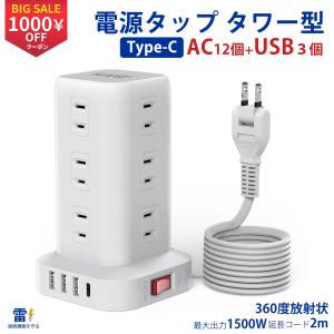 電源タップ タワー たこあしコンセント 電源タップ usb 延長コード 2m AC12口 USB 4ポート 延長コード2m usb コンセント タップ 電源タップ スイッチ