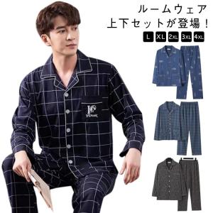 部屋着 コットン パジャマ 春 ルームウェア 綿 長袖 長ズボン ギフト 入院 上下セット パジャマ 前開き 薄手 2点セット 紳士 寝巻き メンズ