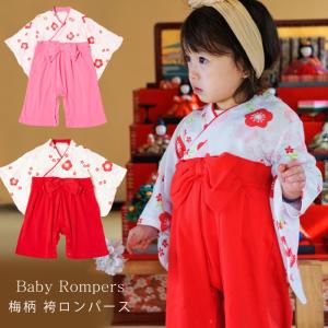 ベビー ロンパース 袴風 可愛い 七五三 ベビー服 晴れ着 和風 お宮参り 女の子 桃の節句 こどもの日 梅柄 女児 袴ロンパース 返品交換不可